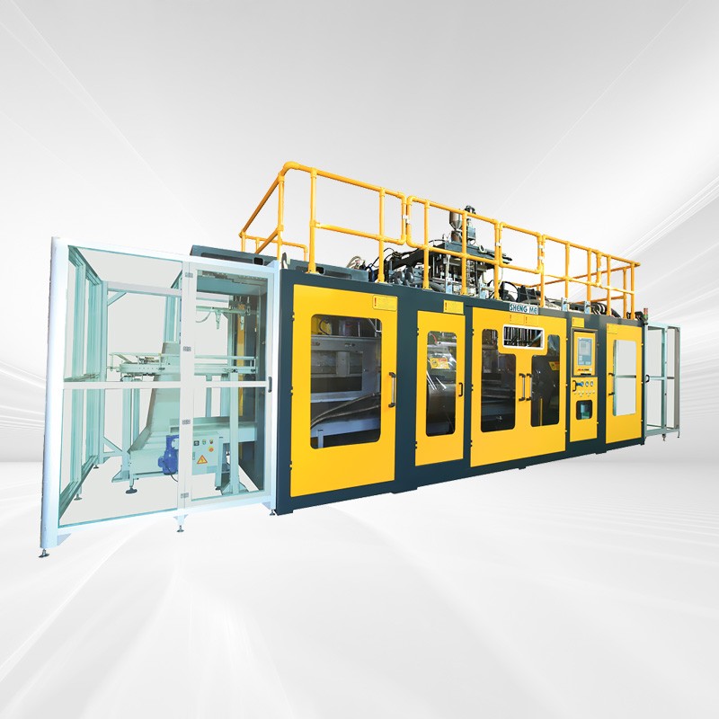 3.采用德国倍福或其它同等品牌电控系统,成品经输送带汇合并收集至一边且成品与溢料分开独立收集强国的曲轴锁模结构结合,德国滚珠线性滑轨设计,性能卓越效率高,特别适用高产量需求之容器生产。